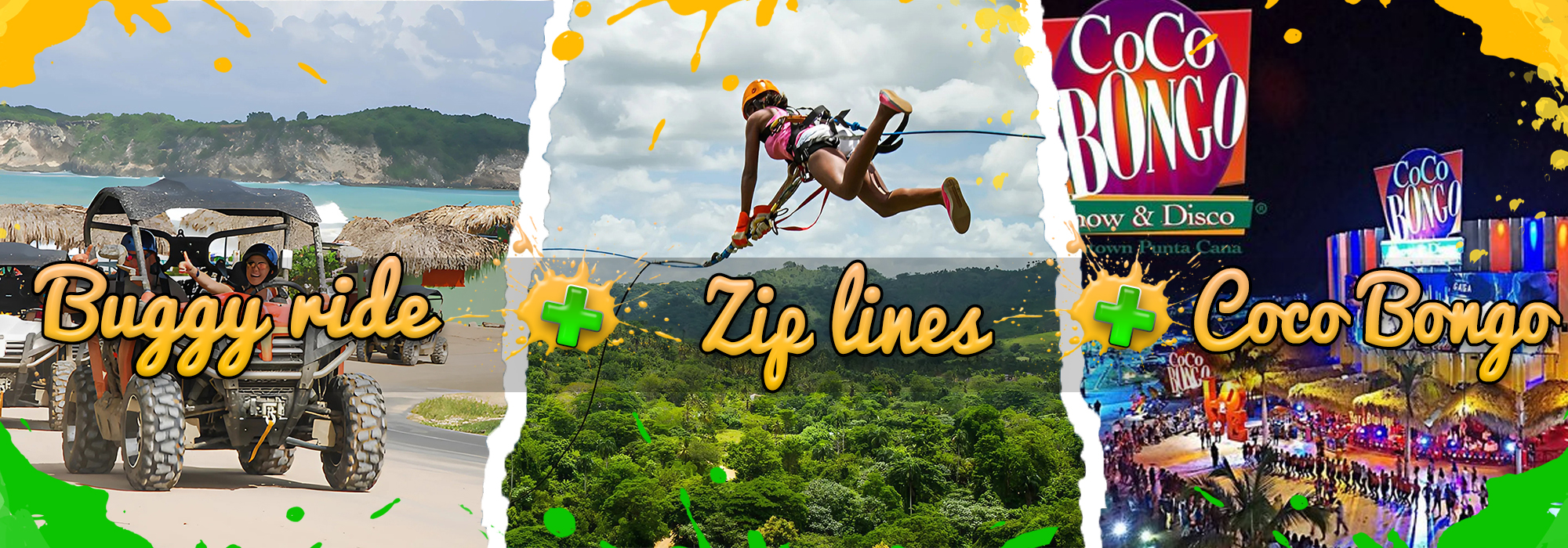 A day where you can enjoy an exciting excursion in buggies and ziplines in the countryside, where you will experience the adrenaline of driving on dirt trails and the thrill of flying through the treetops. Then, as night falls, the adventure continues at Coco Bongo, a theater-style nightclub famous for its spectacular shows. There you can enjoy incredible performances, live music and a vibrant atmosphere, with drinks included to make your experience even more fun and memorable.