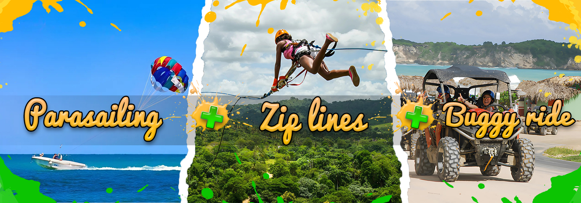 On a day full of adventure, we start with paragliding at Bávaro Beach, where we soar over the sea enjoying stunning panoramic views of the coast and tropical surroundings. Then, we head to the countryside to experience the thrill of ziplines, sliding at high speed between the trees, feeling the breeze and close contact with nature. Finally, we complete the day by driving boogies through trails full of mud and vegetation, experiencing the adrenaline of speed and rugged terrain. It is an unforgettable day, full of spectacular landscapes and emotions.